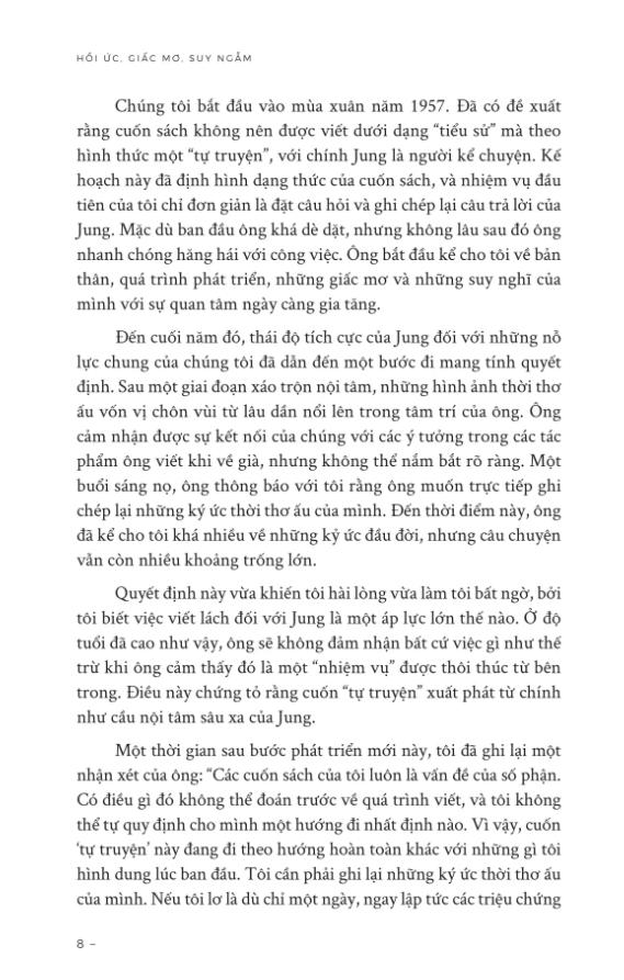 Sách Hồi Ức, Giấc Mơ, Suy Ngẫm là một trong những tác phẩm tâm lý sâu sắc của Carl Gustav Jung, nơi ông chia sẻ những trải nghiệm cá nhân, quan sát về bản thân và phân tích giấc mơ như một phương tiện để hiểu bản chất con người. Cuốn sách không chỉ là nhật ký tự thuật mà còn là hành trình tư duy, khám phá vô thức và triết lý về tâm hồn.