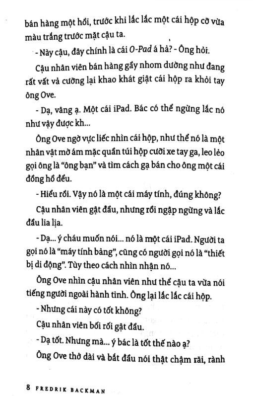 Câu chuyện được mở ra bằng hình ảnh Ove đang cố gắng… mua một chiếc máy tính. Màn đối thoại dở khóc dở cười với cậu nhân viên là lời chào sân hoàn hảo cho tính cách đặc trưng: bực bội, khó chiều, chẳng coi ai ra gì nhưng cũng… cực kỳ dễ thương theo cách chẳng giống ai.